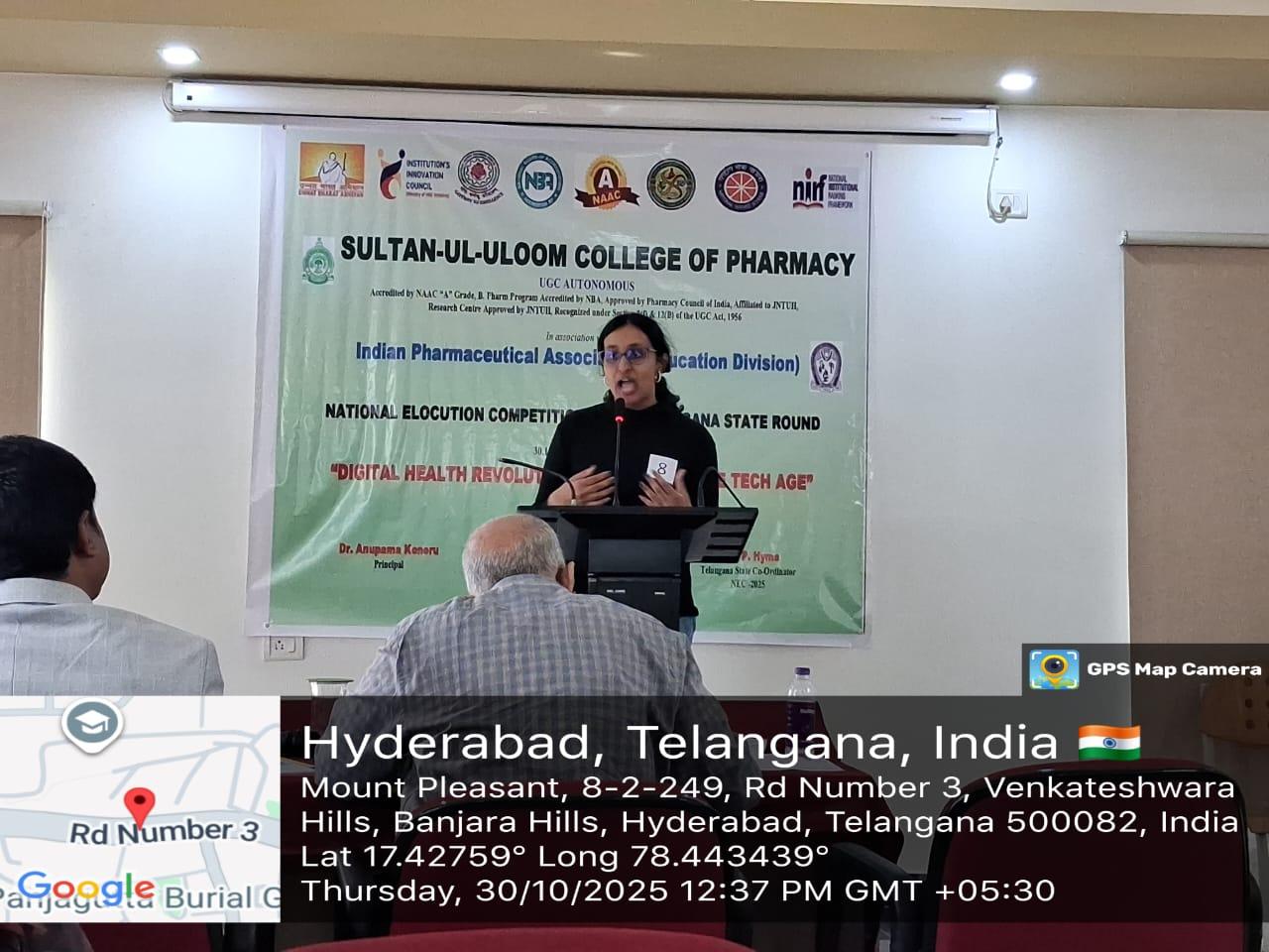 IPA STATE LEVEL ELOCUTION COMPETITION AT SULTAN UL ULOOM COLLEGE OF PHARMACY ON 30.10.2025
