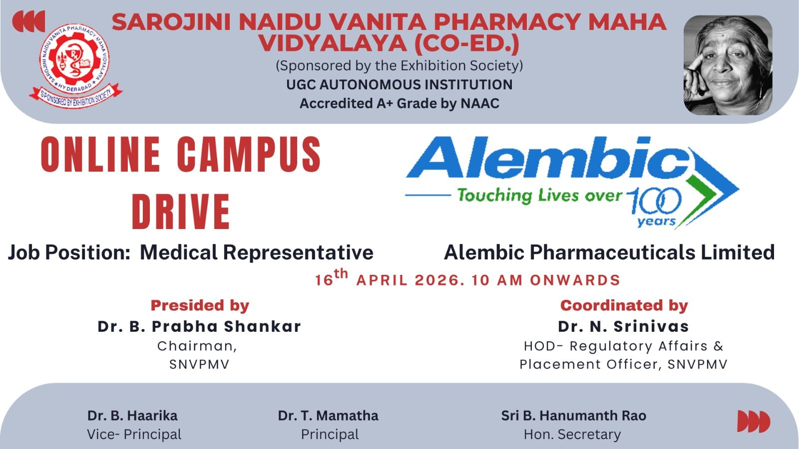 SAROJINI NAIDU VANITA PHARMACY MAHA VIDYALAYA (Co-Ed.)